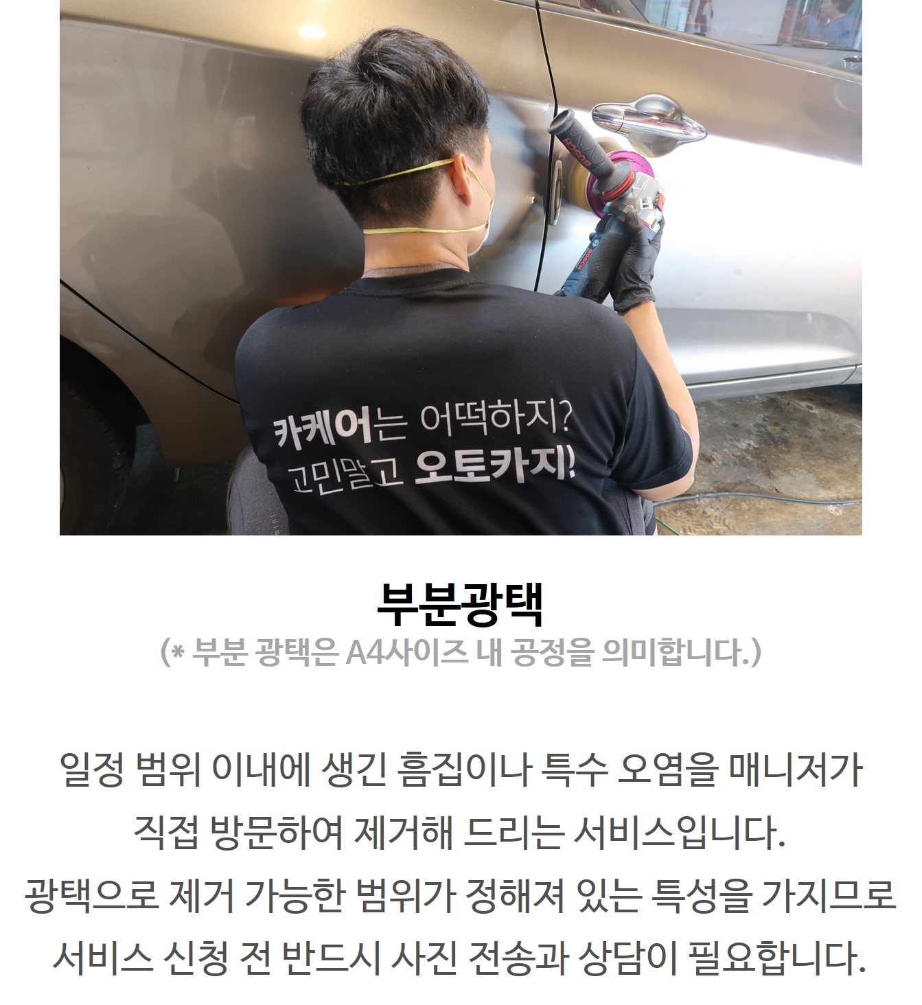 고객이 원하는 예약 일시에 해당 장소로 매니저가 방문하여 제공하는 카케어 서비스입니다.